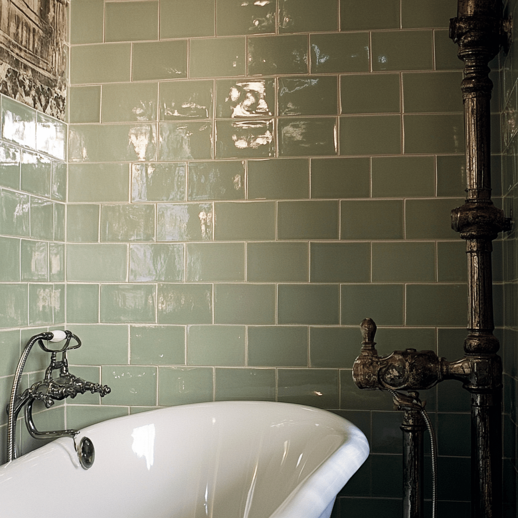 Subway tile is a ceramic or porcelain material with a smooth, glossy finish, featuring a rectangular shape and timeless, versatile design.